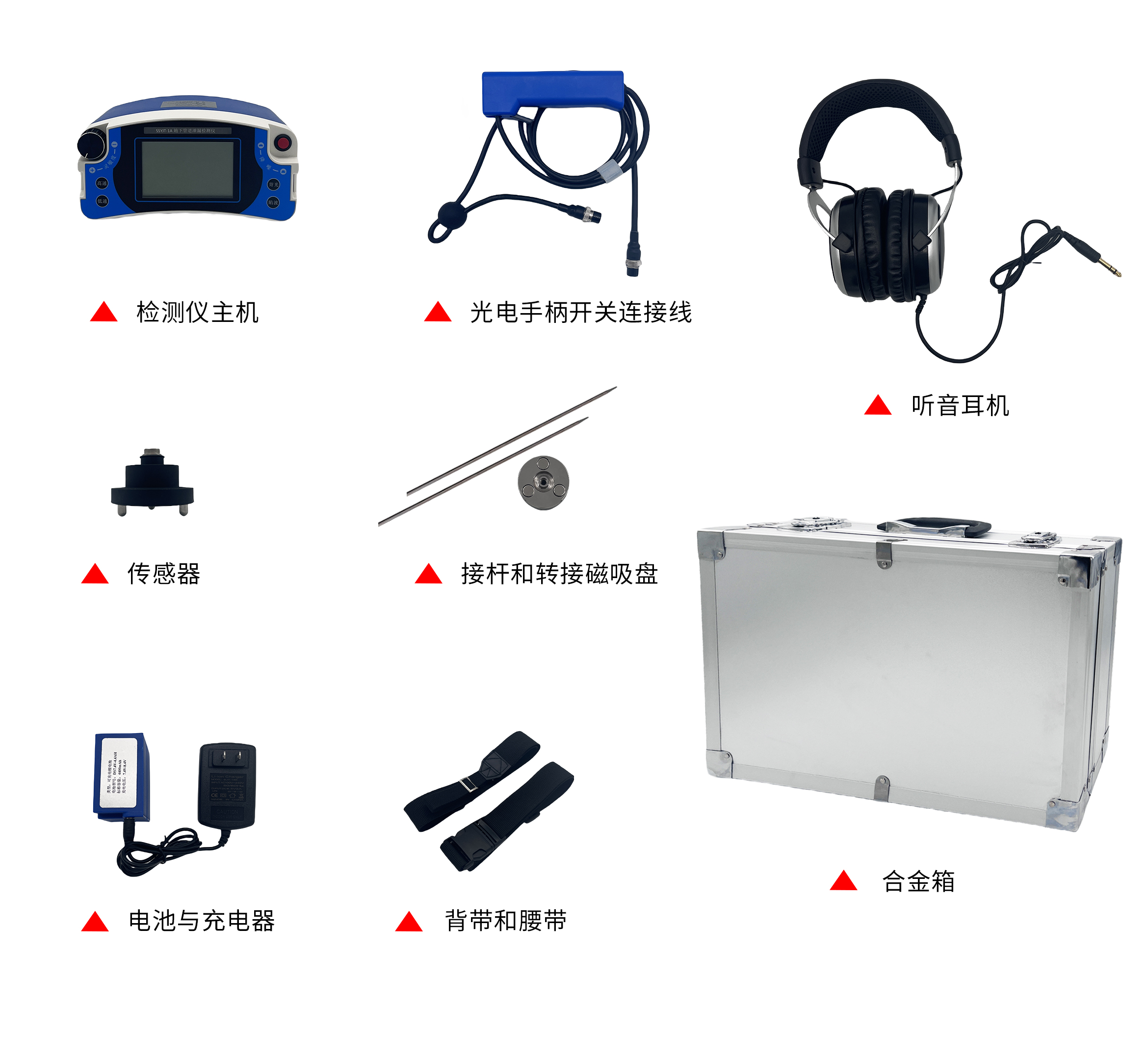 此款泄漏檢測儀配置了適應(yīng)不同檢測環(huán)境的傳感器,從而能有效地實現(xiàn)泄漏點的檢測與定位。通過選擇該檢測儀器中配置的16組頻段組合中的任何一組頻段來檢測泄漏信號,以滿足不同材質(zhì)/管徑管道、不同工作地段(埋層介質(zhì))的泄漏檢測需要。為了提高實際檢測的效果,本檢測儀提供工頻降噪的功能以消除工頻干擾;提供環(huán)境降噪的功能以降低環(huán)境干擾對泄漏檢測的影響。此外,本檢測儀器還為泄漏檢測操作者提供了通過視覺顯示以及定量數(shù)值來判斷泄漏大小的功能。