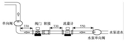 (2)在下坡道或水平管道并緊接管道出口處安裝流量計時,應(yīng)在流量計下方安裝控制閥門,并與流量計保持一定距離。