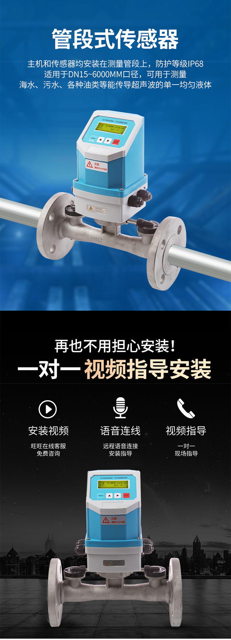 測量范圍大選用不同型號的傳感器,可實現(xiàn)口徑DN15~DN6000mm管道流量的測量