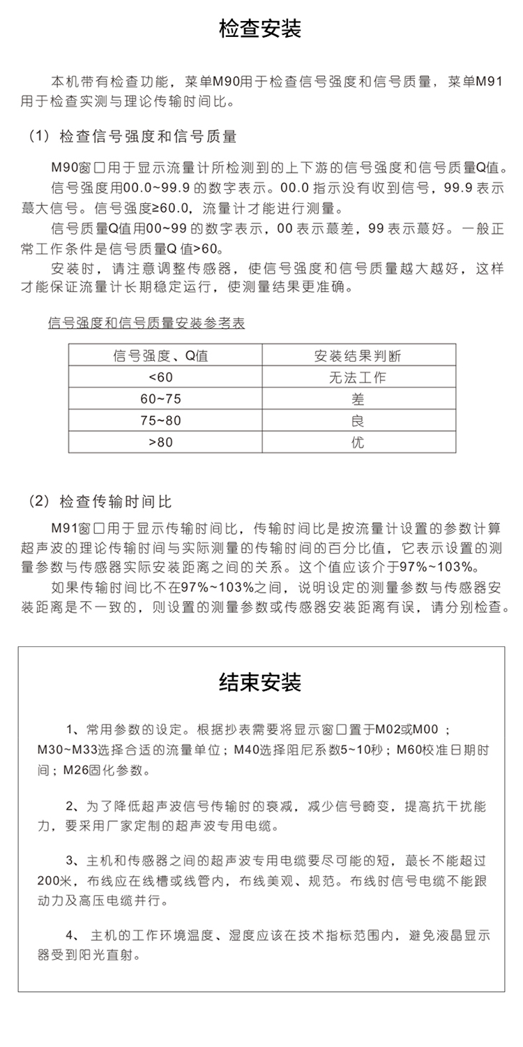 傳感器安裝點滿足:上游10D,下游5D,距泵出口處30D(D 是指管徑)