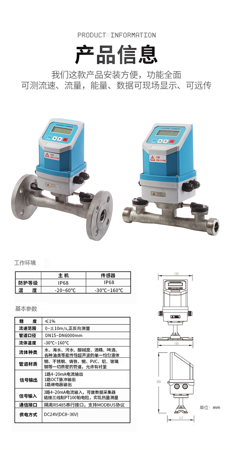 主機:-20~60℃,流量傳感器:-30℃~160℃