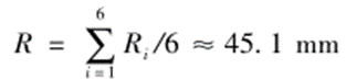 為了減小計算誤差,提高數(shù)據(jù)的置信度,對表3中的各等效半徑做平均值得到R,即: