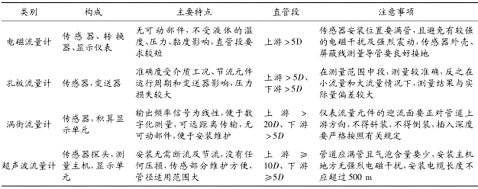 表2 大口徑水流量計(jì)性能特點(diǎn)匯總表