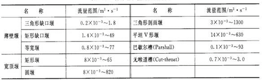 表5各種各種堰槽的流量范圍